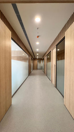 The reception and all meeting rooms are on the ground floor and the bullpen office area is on the upper floor, with the cafeteria & break out public space on the terrace floor. The spatial design concept stems from the Korean style of minimalism. The Central zone acts as the most active one as an informal public breakout space that is surrounded by the formal bullpen and individual workspaces on both sides, allowing employees to gather together in the center for break time or to brainstorm and work efficiently, whereas as the senior management cubicles & discussions rooms are placed on diagonal axes and are composed to give a feeling of privacy.