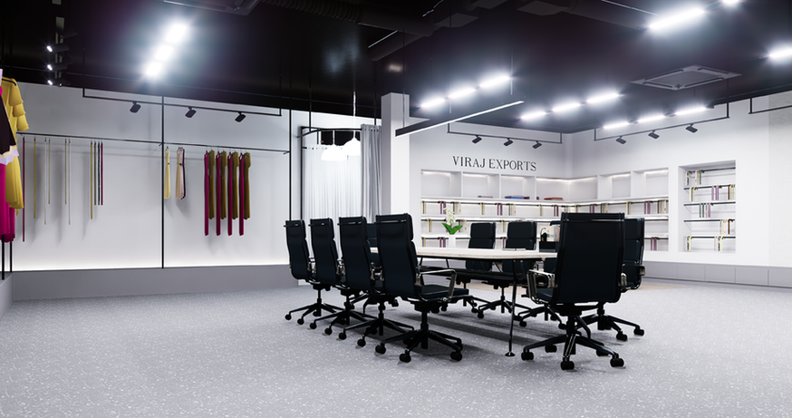 The design goal was to go create a showroom/space that carries the clients varied garments and colourful creations. The spatial design has an industrial approach, the monotone colour palette ensure a perfect setting for a showroom. The showroom space acts as a blank canvas for colourful garments. The industrial style lighting reflects the modern yet edgy design approach to the space.